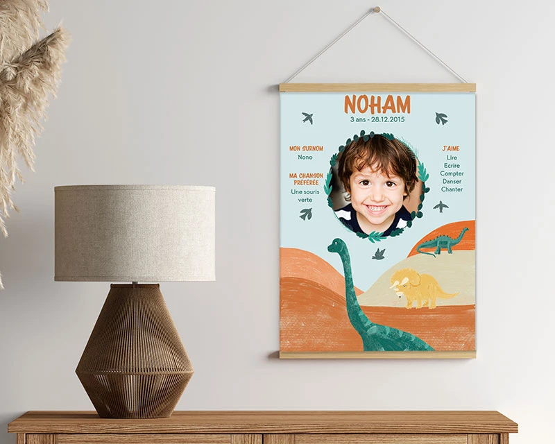 L’affiche d’anniversaire personnalisable sur la thématique des dinosaures est un cadeau original et unique pour un petit garçon qui adore ces créatures préhistoriques. Cette affiche peut être personnalisée avec le prénom de l’enfant, son surnom, sa chanson préférée et ce qu’il aime le plus dans la vie. Quoi de mieux pour montrer à quel point vous connaissez bien le petit garçon que vous voulez gâter pour son anniversaire ? Vous pouvez également ajouter sa photo, sa date de naissance et son âge pour en faire un souvenir encore plus spécial.