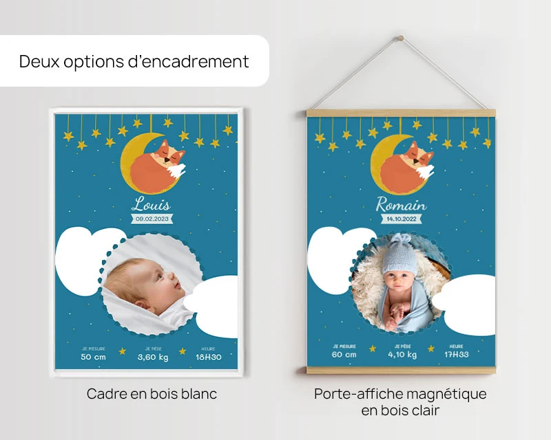 Commandez dès maintenant votre affiche de naissance personnalisée pour offrir un cadeau original à de jeunes parents.