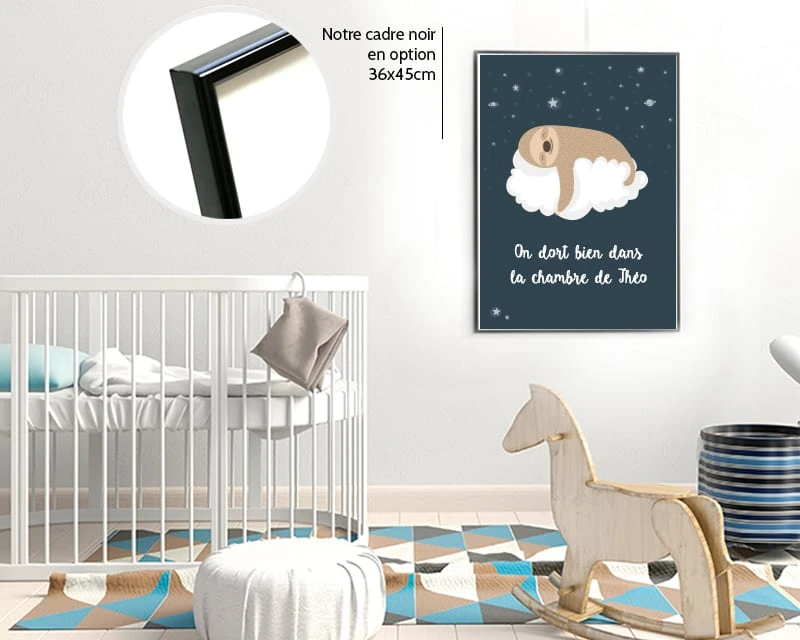 - Cadre en bois robuste noir : Affiche A3 livrée dans son cadre en bois noir. Le cadre peut être suspendu. Dimensions : 33 x 47 cm.