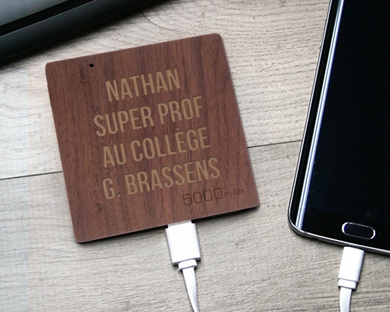 Dites à la maîtresse, maître ou Atsem à quel point votre enfant a aimé l’année en offrant ce superbe chargeur nomade. Personnalisez cette batterie externe d’un ou plusieurs messages et offrez-le en remerciement. Un cadeau original et unique juste pour le professeur.