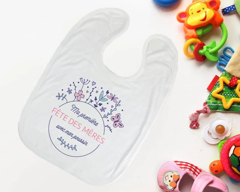 Surprenez la jeune maman avec ce joli bavoir de notre collection ‘Ma première Fête des mères’ entièrement personnalisable selon vos envies. Ajoutez un message tendre, le prénom de la maman et/ou de son bébé, et le tour est joué ! Ses couleurs douces et ses tons fleuris achèveront de vous convaincre que c’est le petit cadeau parfait pour la Fête des mères. La composition 100% coton de ce bavoir en fait un accessoire très confortable et doux pour la peau de bébé.