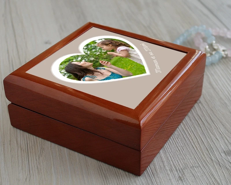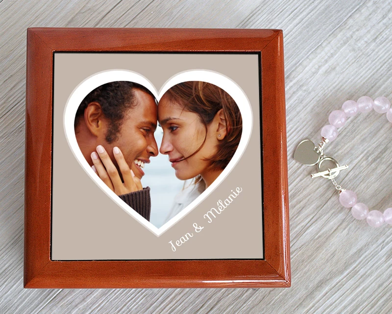 Envie de lui déclarer votre amour ? Offrez-lui cette magnifique boite à bijoux et personnalisez-la avec une de vos plus belles photos ! Effet de surprise garanti ! Idée cadeau unique et originale. Pensez aussi à ajouter la touche finale à votre cadeau : un pendentif orné de Cristaux Swarovski®. Un petit bijou qui ravira à tous les coups !