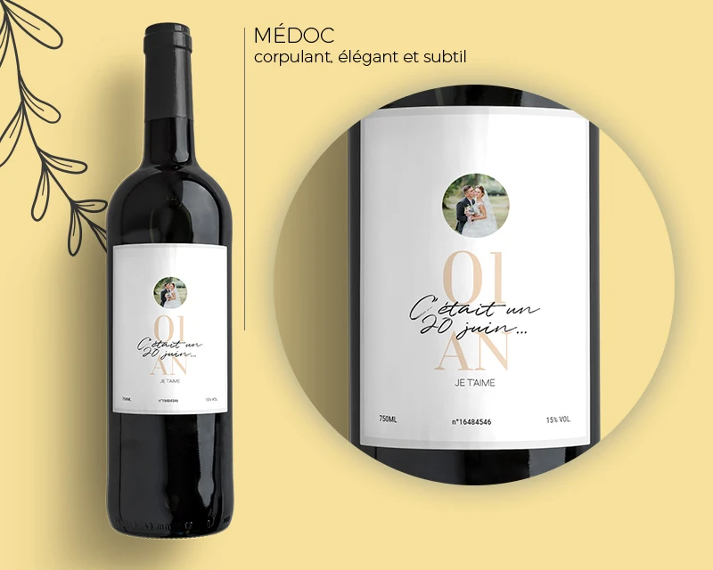 Imaginez la surprise et la joie que ce cadeau unique apportera lors de la célébration de cet anniversaire de mariage. Le vin personnalisé sera un témoignage tangible de votre amour durable et un souvenir précieux de cette étape importante. Que ce soit pour votre partenaire ou un couple cher à votre cœur, cette bouteille de vin personnalisée est un geste attentionné qui marquera cette occasion spéciale d’une manière inoubliable.