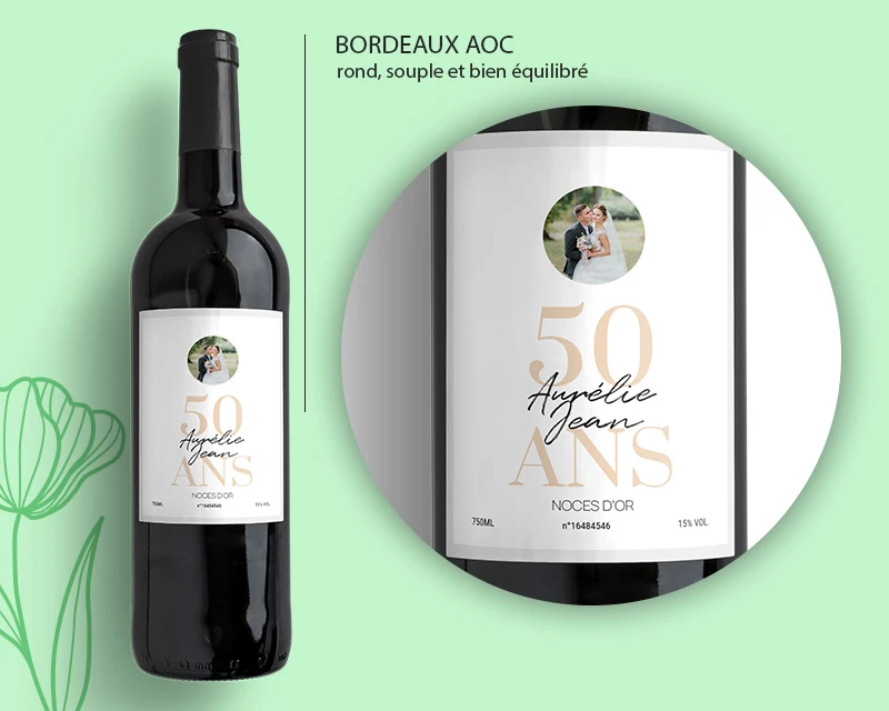Offrez un cadeau qui allie sophistication du vin et touche personnelle, et créez des souvenirs qui dureront toute une vie. La bouteille de vin personnalisée est le choix parfait pour célébrer des noces et exprimer votre amour et votre admiration pour ce couple extraordinaire.