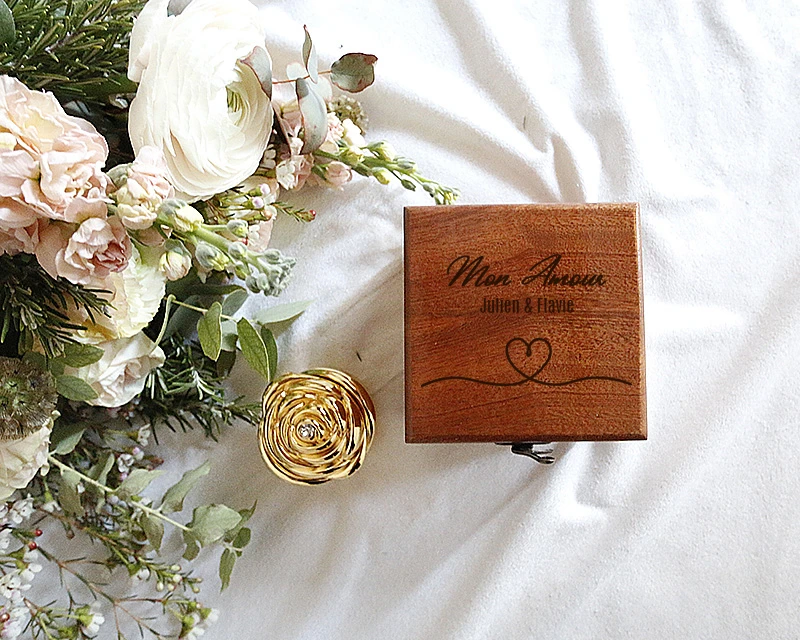 Besoin d’inspiration ? Retrouvez quelques exemples de messages pour personnaliser le coffret en bois gravé de notre bouton de rose en or et sa rose éternelle secrète.