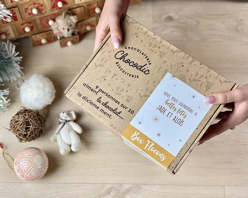 Coffret gourmand sucré avec étui personnalisable.
