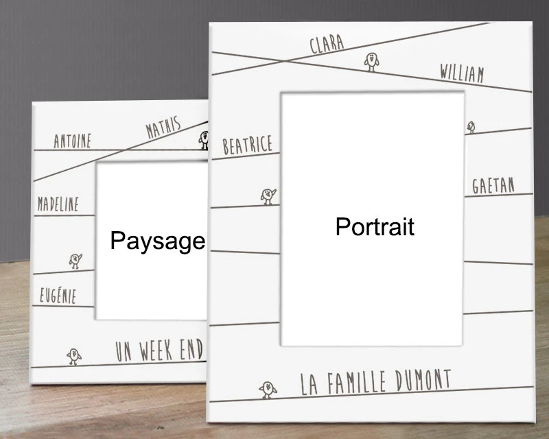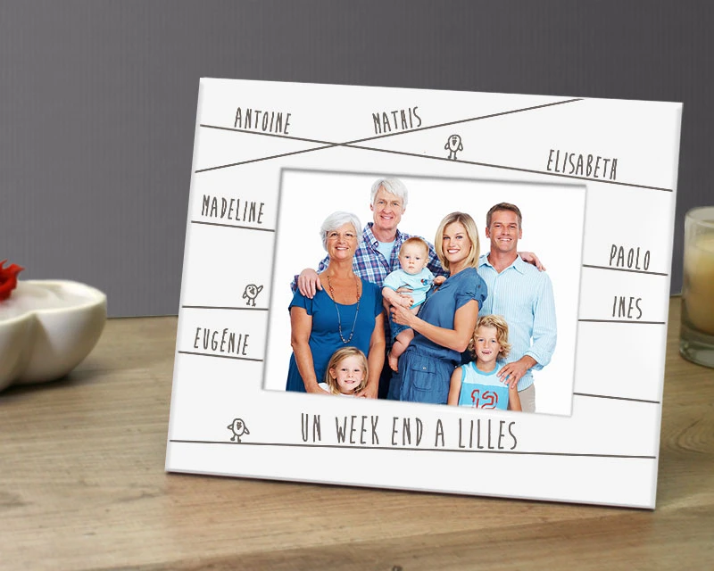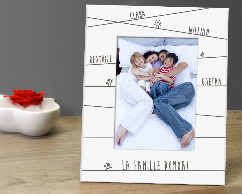 On est toujours très fier de la famille que l’on a fondée ! Célébrez-la en offrant ce joli cadre blanc personnalisé, où seront gravés tous les prénoms des membres de la famille. Vous pouvez même ajouter en bas un message de votre choix. Un cadeau de décoration, mais aussi plein d’émotions !