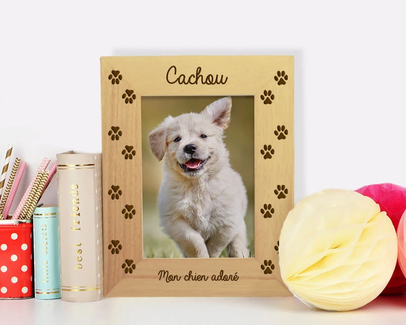 Vous adorez les chiens ? Alors, immortalisez votre animal de compagnie préféré, grâce à ce cadre photo en bois gravé. Personnalisez-le du prénom de votre chien et d’un message d’amour. Une idée cadeau originale qui égayera votre intérieur.