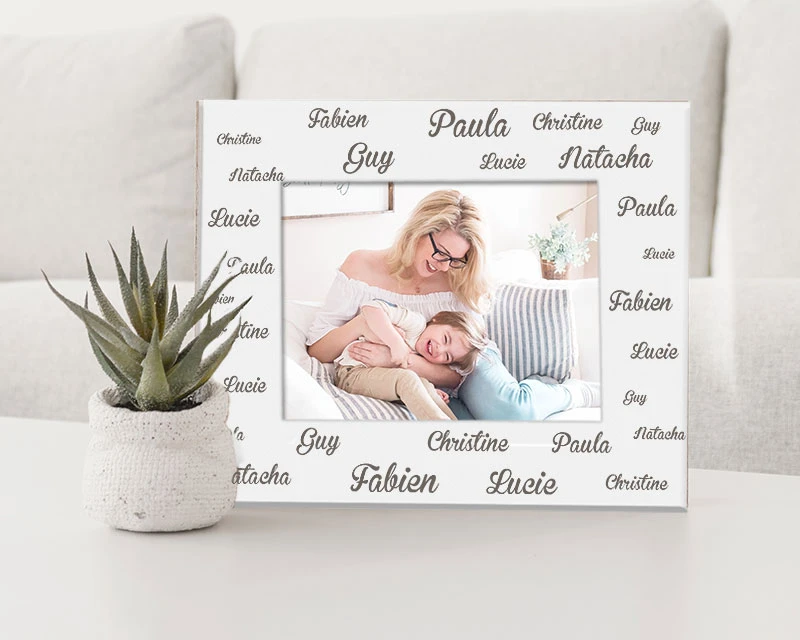 Gardez des souvenirs merveilleux de famille avec ce jolie cadre blanc personnalisé. Faites graver les prénoms de tous les membres de votre famille. Un cadeau unique et esthétique, que vous serez fier d’offrir et que le destinataire sera fier d’accrocher !