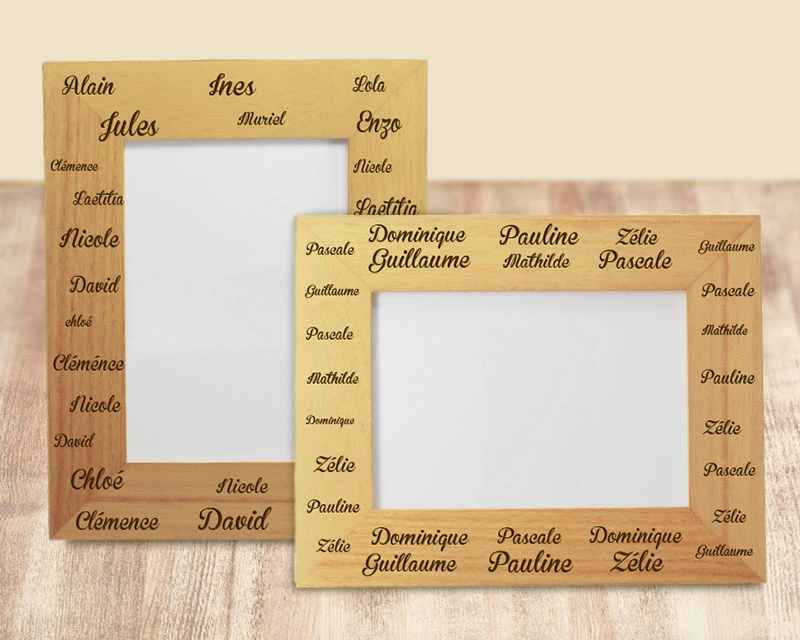 Ne vous contentez plus des simples photos de famille encadrées : faites graver tous les prénoms de membres de la famille et offrez ce cadre en bois personnalisé. Un cadeau unique et esthétique, que vous serez fier d’apporter et que le destinataire sera fier d’accrocher !