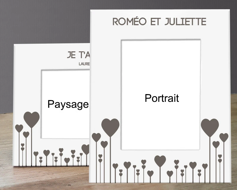 Offrez à votre bien-aimé un cadeau qu’il ne manquera pas de contempler : un cadre gravé à vos 2 prénoms ! Quoi de plus romantique que votre photo exposée dans ce beau cadre personnalisé.