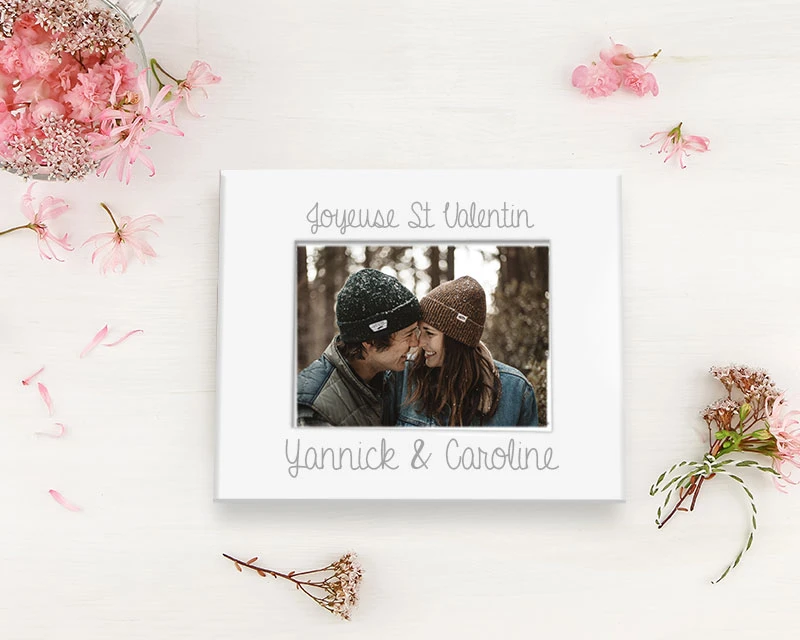 Pour la Saint-Valentin ou juste pour lui dire que vous l’aimez, offrez-lui ce cadre photo blanc gravé à vos 2 prénoms. Un cadeau unique et original qui ne quittera plus son bureau !