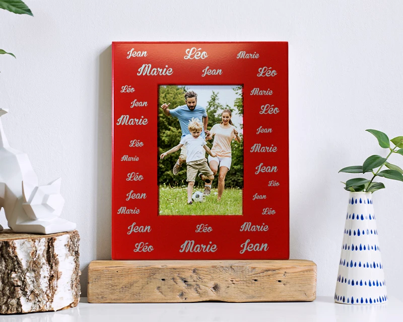 Gardez des souvenirs merveilleux de famille avec ce jolie cadre rouge personnalisé. Ajouter vos photos préférées et faire graver tous les prénoms de membres de la famille. Un cadeau unique et esthétique, que vous serez fier d’apporter et que le destinataire sera fier d’accrocher !