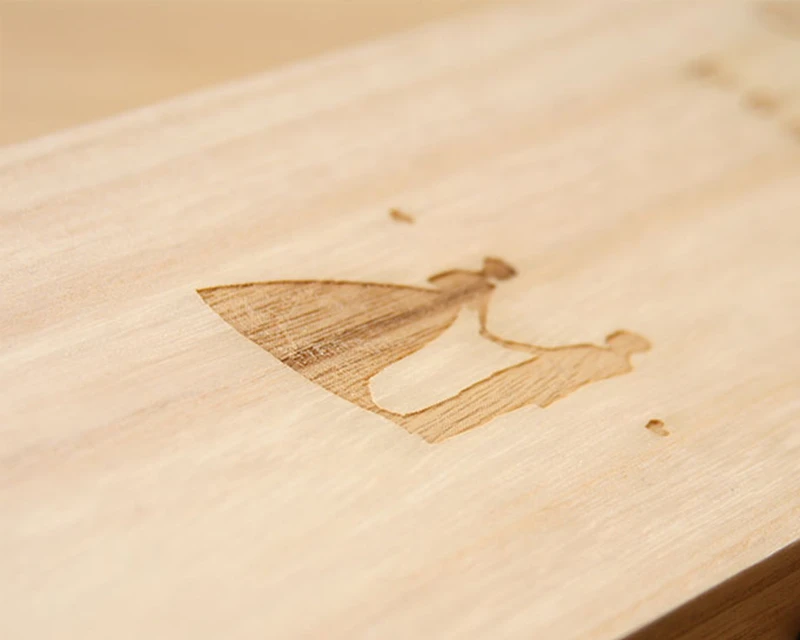 Le bois est un matériau naturel : sa couleur et la couleur de la gravure peuvent varier en fonction des veines du bois.