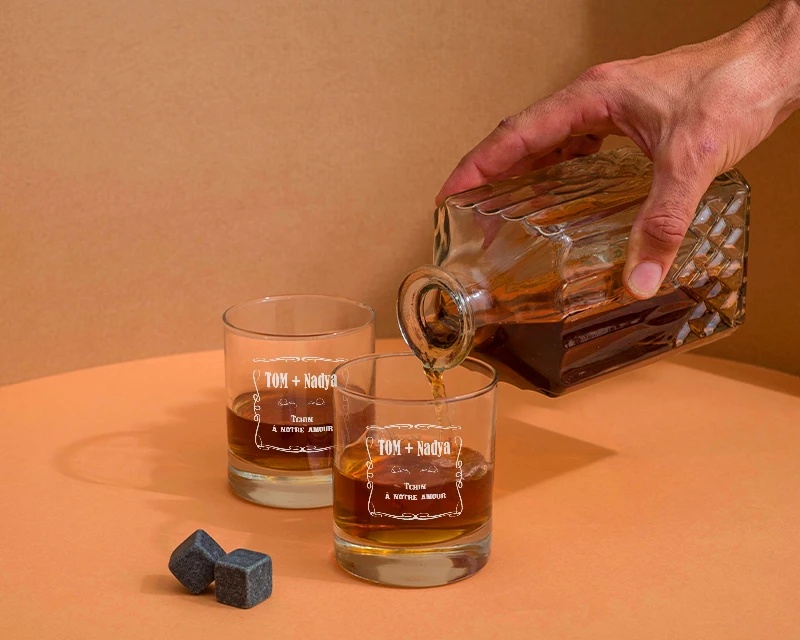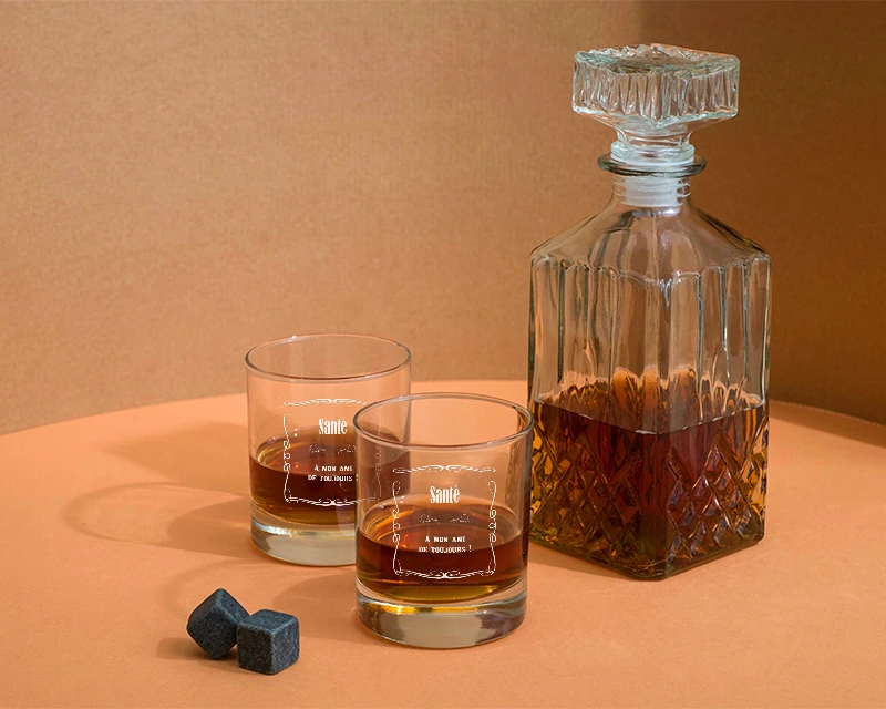 Carafe à Whisky Et Ses Deux Verres Gravés