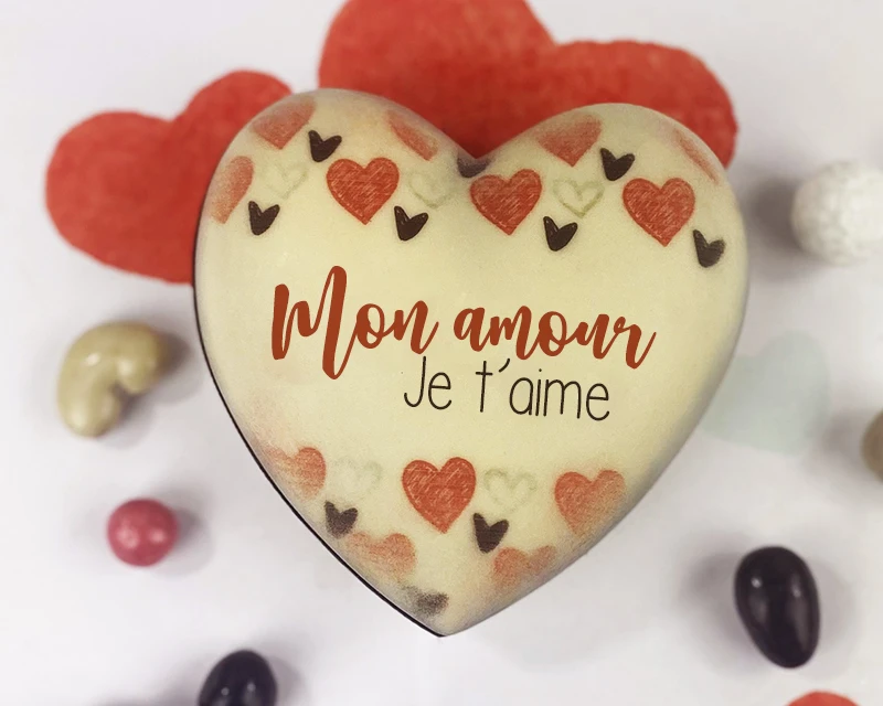 Personnalisation : Encres alimentaires sur le cœur en chocolat