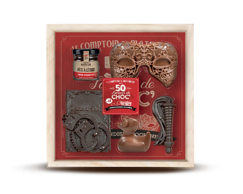 – Livre Marquis de Sade et une paire de menottes en chocolat noir