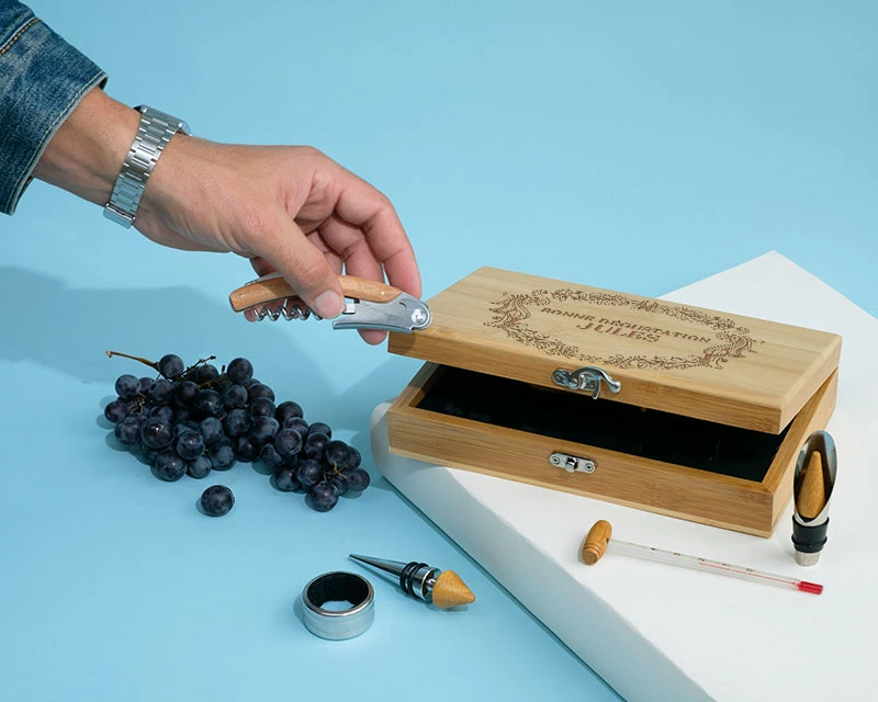 Notre coffret du sommelier personnalisé et ses accessoires en détail