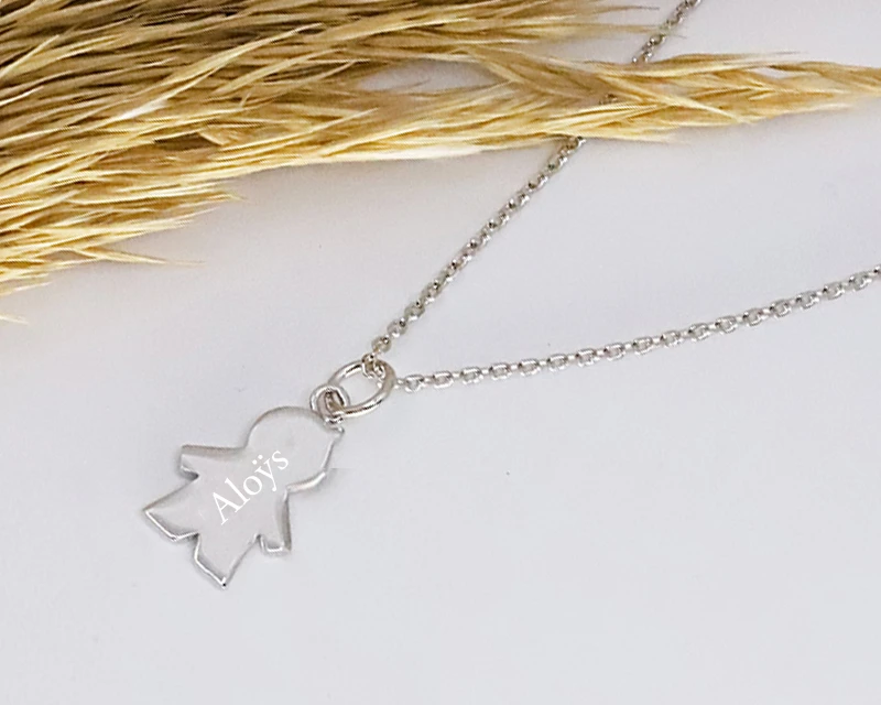 Ce collier avec un pendentif de petite fille ou de petit garçon deviendra vite le bijou favori de toutes les mamans ! En personnalisant le pendentif avec la gravure de votre choix, vous serez certain de faire plaisir pour la Fête des Mères, la Fête des Grands-Mères ou pour une naissance. Une jolie façon de porter l’amour de ses enfants autour du cou.