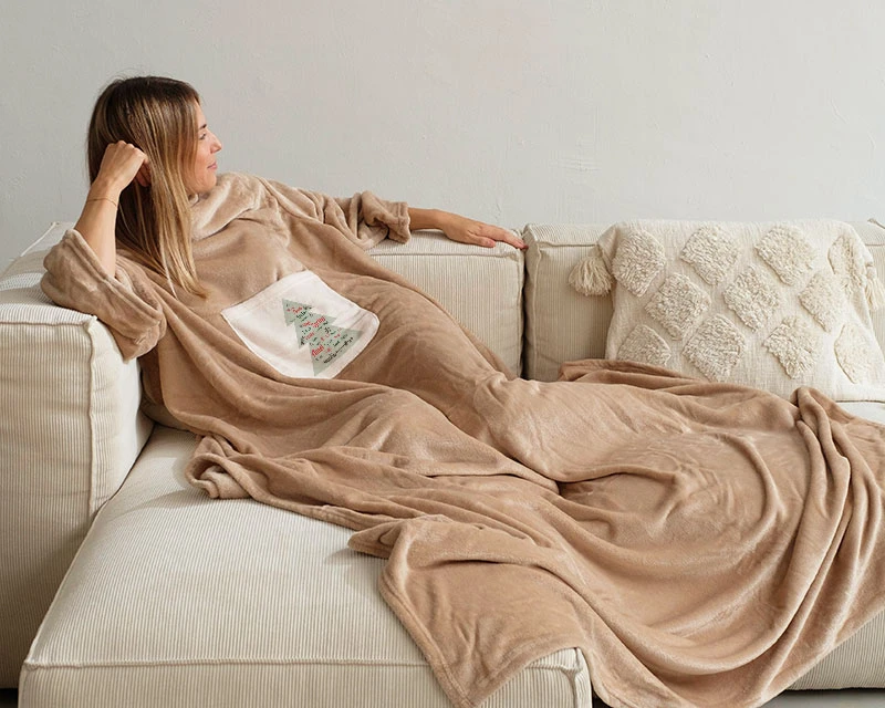 C’est totalement emmitouflé de douceur et de chaleur que vous pourrez profiter de votre temps libre, tout en ayant les mains libres pour avoir votre mug (personnalisé) de thé à la main, et la télécommande dans l’autre ! Vous pourrez personnaliser le sapin avec le prénom de vos proches (jusqu’à 5 !) et en faire un cadeau parfait pour Noël ou toute autre occasion.