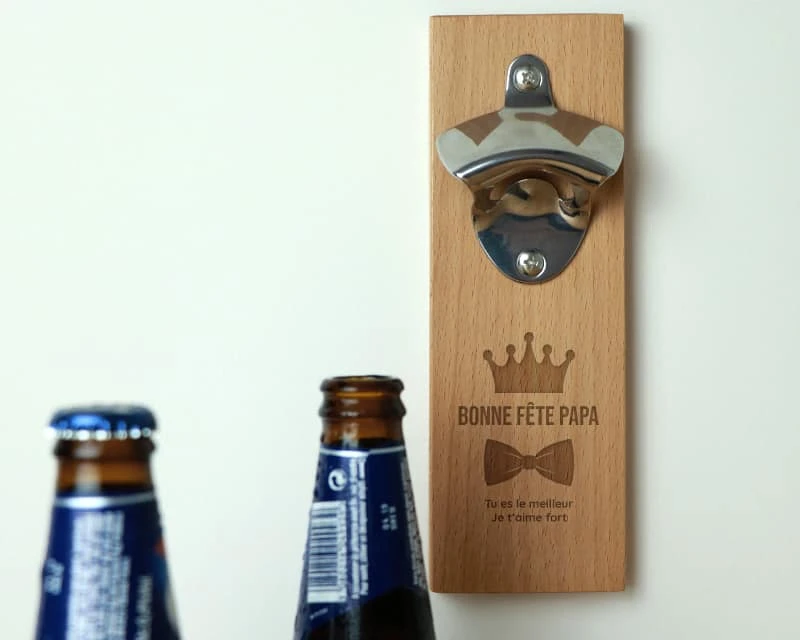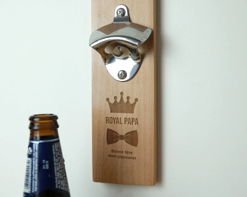 Voilà un cadeau de Fête des Pères à offrir sans modération à un papa amateur de bière ou qui aime recevoir : le décapsuleur mural personnalisé « Papa Royal ». Un cadeau pratique au design vintage qui fera de lui le roi de l’apéro.