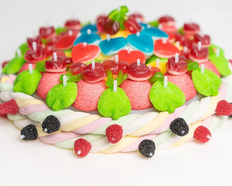 Un (maxi) gâteau de bonbons gourmand composé de délicieux bonbons 100% naturels à partager. Pour environ une douzaine de personnes. Les bonbons sont fixés sur un support en plastique sécurisé (pas de pic pointu pouvant se détacher), ce gâteau est parfaitement adapté pour les enfants. Ainsi que pour tous les gourmands qui apprécieront la possibilité de choisir ce qu’ils préfèrent : le bonbon qui pique, celui à la fraise ou encore le tendre chamallow…