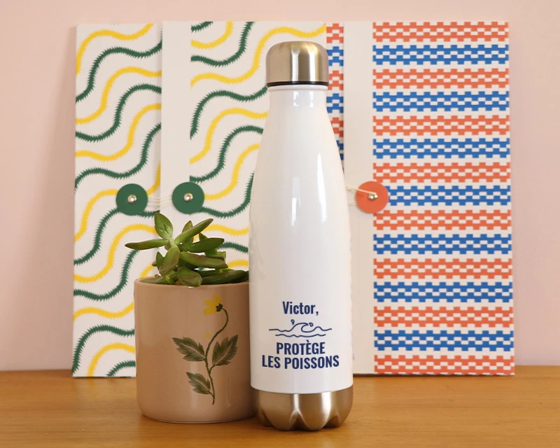 La tendance n’est plus au jetable ! Aujourd’hui, plus de plastique, on privilégie l’inox avec cette gourde personnalisable. Son design esthétique et épuré conviendra parfaitement aux esprits libres et marins, et pourquoi pas, l’accompagnera lors de ses sorties en bateau ! Avec un prénom ou un petit message, cette gourde touchera son destinataire à coup sûr, voilà de quoi marquer des points et à offrir pour toutes les occasions…