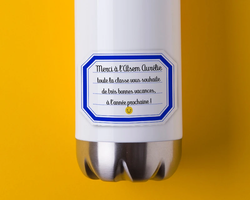 Accessoire tendance du moment, la bouteille isotherme ne quittera plus le sac du maître, de la maîtresse ou de la nounou responsable à qui vous l’offrirez. Inscrivez un petit mot de remerciement sur celle-ci, et voici le cadeau de fin d’année idéal !