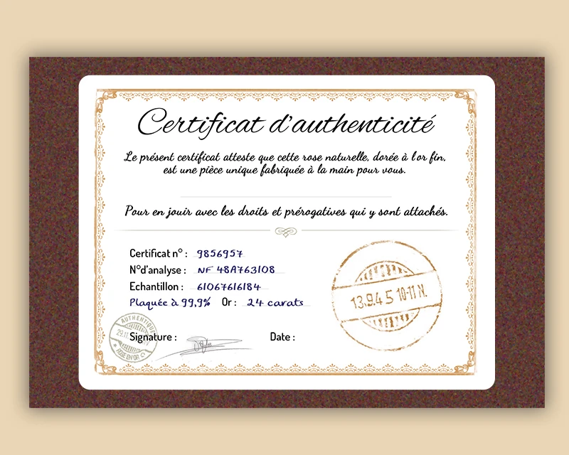 - sa rose en or livrée avec son certificat d’authenticité