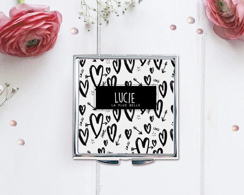 Dites je t’aime autrement avec ce super miroir Coeur Love. Un cadeau personnalisé d’un prénom ou d’un message qui fera le bonheur de la personne à qui vous voulez l’offrir. Pourquoi pas faire plaisir à votre maman, votre meilleure amie ou votre soeur ? Vous pouvez l’offrir à l’occasion d’un anniversaire ou de la fête des mères ou de noël.