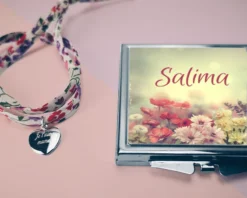 Miroir De Sac Personnalisable – Avec Son Bracelet Double ChaĂ®ne Coeur