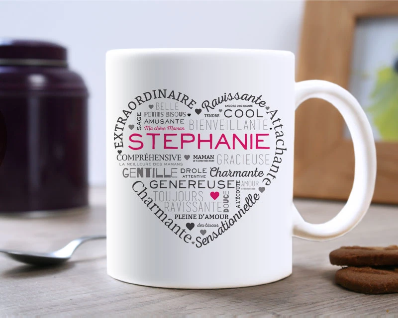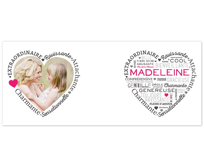 Votre maman est extraordinaire, ravissante, sensationnelle, charmante, généreuse, etc… Dites-le lui avec ce magnifique mug ! Personnalisez-le avec son prénom et une photo. Grâce au désign ‘Les petits mots pour Maman’, elle commencera sa journée de bonne humeur et avec de l’énergie ! Idée cadeau original et unique à offrir à la Fête des Mères !