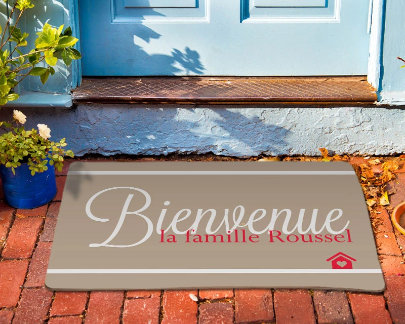 Personnalisez votre tapis d’entrée pour accueillir vos invités ! Ajoutez votre nom de famille ou celui de son destinataire pour faire un cadeau vraiment original !