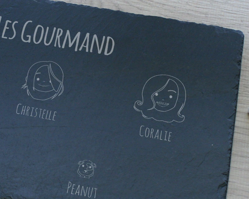 Offrez votre famille sur un plateau en ardoise ! Personnalisez-le avec des personnages reprĂ©sentant votre famille ou celle de la personne Ă qui vous l’offrez ! Un cadeau original et unique qui surprendra Ă coup sĂ»r ! Vous pouvez aussi accompagner ce cadeau d’un mug, d’un tablier ou encore d’une planche Ă dĂ©couper de la mĂŞme collection !