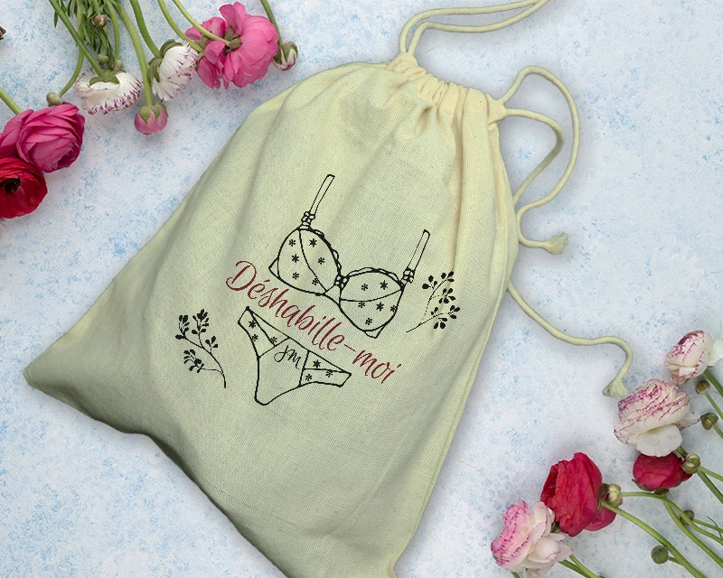 Vous souhaitez offrir un cadeau sexy romantique et sensuel à votre moitié pour la Saint-Valentin? Ce pochon spécial lingerie sera parfait pour l’emballer. Avec son design raffiné et sa touche sexy, personnalisez-le d’un message un brin coquin ou d’une déclaration d’amour. Sur le dessus de la culotte, vous pourrez également y glisser ses initiales. Ou les vôtres combinées..