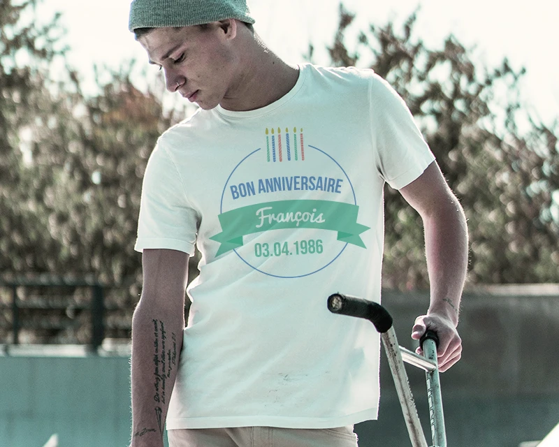 A la recherche d’un petit cadeau sympa Ă offrir Ă un ami ? Voici le t-shirt personnalisable Anniversaire ! Renseignez son âge, son prĂ©nom et un message rigolo et le tour est jouĂ©. Surprise garantie !
