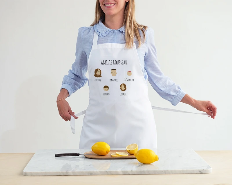 Un petit cadeau original et qui fera plaisir aux amateurs de cuisine : un tablier personnalisé et illustré avec toute votre petite famille !