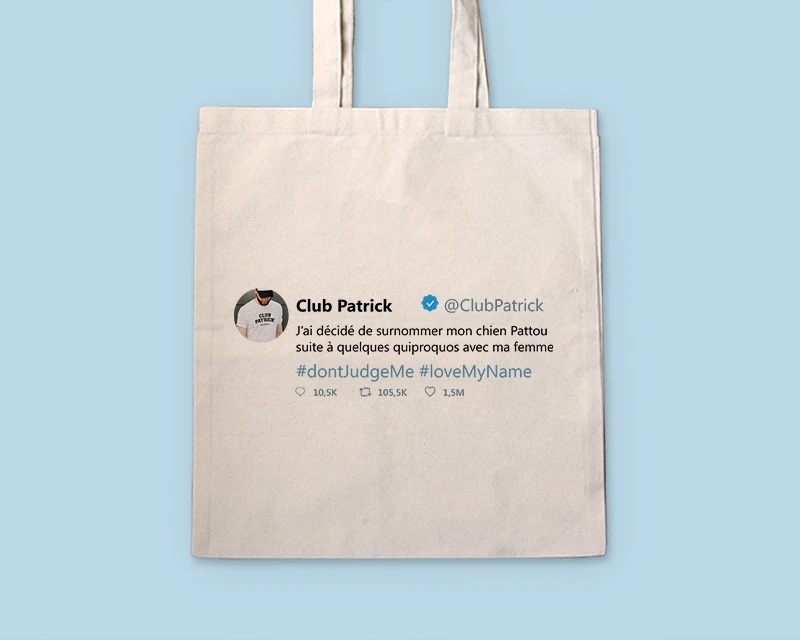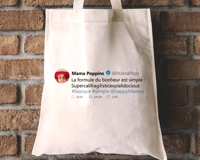 Une réplique qui fait rire, une phrase au sens caché, un blague à mourir de rire, une citation célèbre et inspirante : sur Twitter on se lâche avec les mots, et ça fait souvent du bien ! Alors que ce soit le tweet d’une célébrité ou le tweet d’un de vos proches, vous pourrez désormais l’immortaliser sur ce Tote-Bag personnalisable. Et nous avons pensé à tout : Photo Avatar, Pseudo, Hashtags, et bien sûr 3 lignes de texte pour vous exprimer. Un cadeau drôle et tendance à offrir pour un anniversaire, une remise de diplôme, ou encore à Noël.