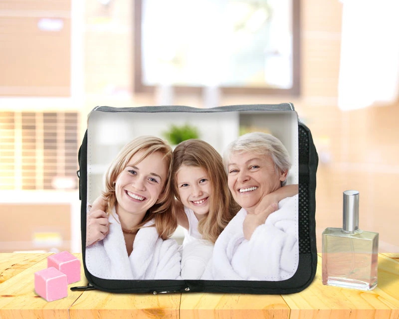Que ce soit grâce à vos photos de vacances, ou vos photos de famille, sublimez cette magnifique trousse de toilette. C’est un compagnon de voyage qui vous accompagnera partout où vous irez. Personnalisez-la de la photo de votre choix et offrez-la pour un anniversaire, la fête des Pères, la fête des Mères ou Noël.