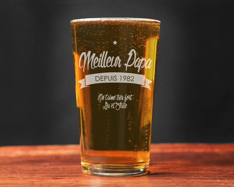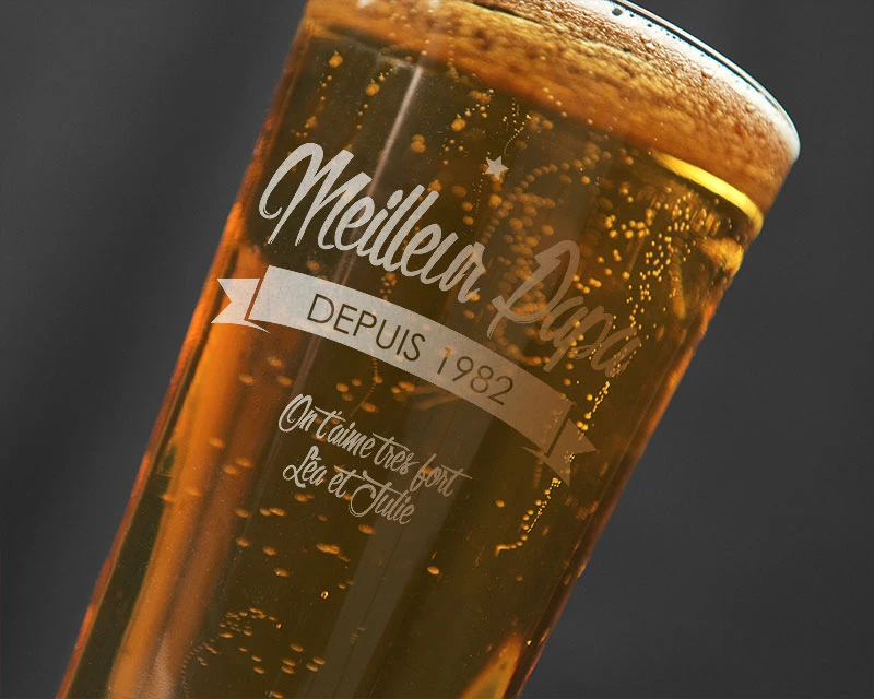 Notre verre à bière personnalisé est un cadeau touchant à offrir à votre papa. Personnalisez-le grâce à la gravure de son prénom et d’un texte de votre choix. Il pourra ainsi boire de la bière dans un cadeau qui lui ressemble.